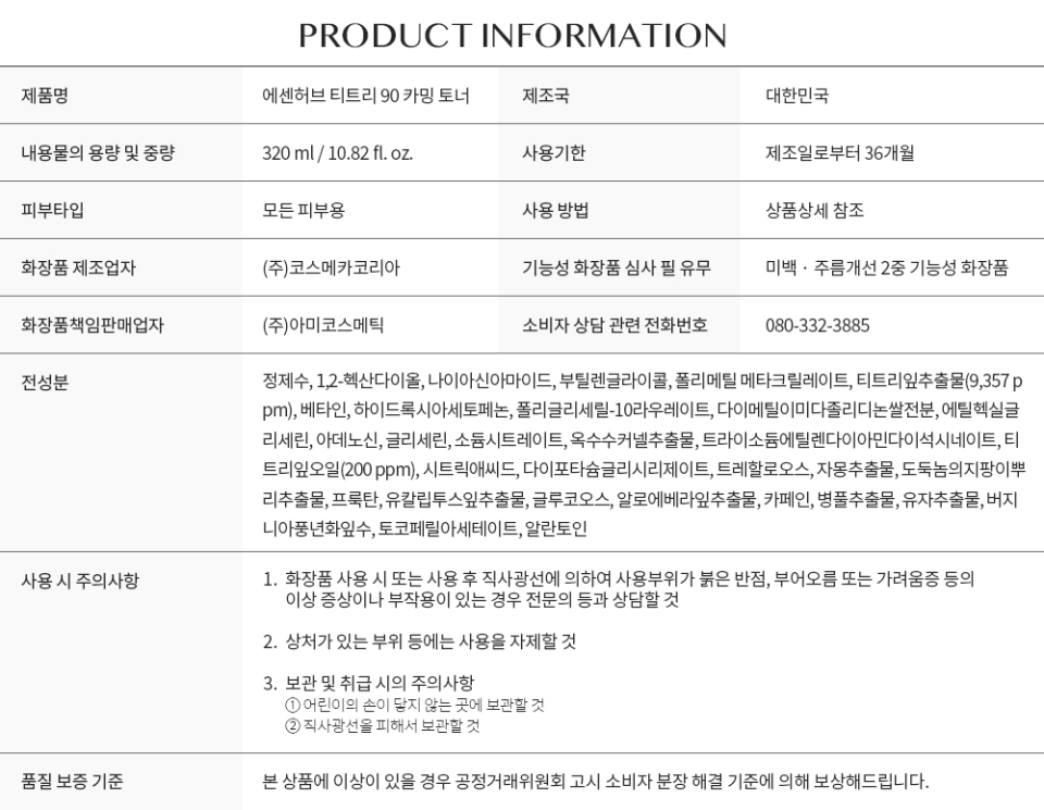 essenherb Tea Tree 90 Calming Toner 320ml (ES1092) / Expiration date 2026.09