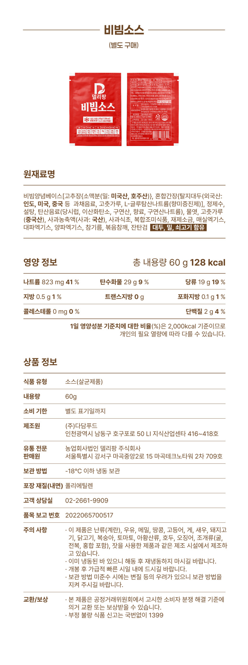 | 보관방법 | 냉동보관 |